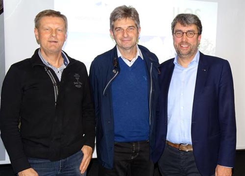 Abb. 3: Prof. Dr. Wolfgang Prämaßing (Mitte) mit dem Vorsitzenden der DRG, Dr. Harald Nonn (li.) und seinem neuen Kollegen, Prof. Martin Thieme-Hack beim Meeting des Beirates „Rasenwissenschft“ an der HS Osnabrück .