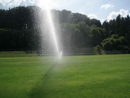 Nach dem bundesweiten nassen Frühjahr mit einer eher Überversorgung an Wasser benötigten unsere Rasenflächen in den letzten Wochen unsere Hilfe. Hohe Temperaturen und kaum Niederschläge erforderten eine Zusatzberegnung. Die wurzeltiefe Beregnung konnte den Wasserbedarf der Gräser sicherstellen und Trockenschäden vermeiden. Wasser ist das wichtigste Transportmittel in der Pflanze und für den Turgor (Innendruck der Zellen) unentbehrlich.
