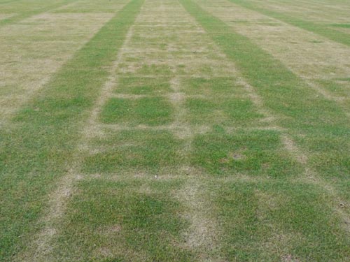 Die Auswirkung einer gezielten Herbstdüngung auf Rasenflächen wird insbesondere in den Wintermonaten offenkundig. In dem gezeigten Düngungsversuch sind gedüngte und ungedüngte Parzellen klar erkennbar. Darüber hinaus werden bei verschiedenen Produkten unterschiedliche Farbreaktionen bei den Gräsern sichtbar.