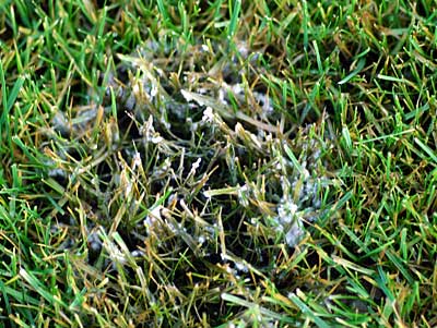 Der Erreger Microdochium nivale bevorzugt kühle Temperaturen mit hoher Luftfeuchtigkeit, so dass er gerade in diesen Tagen besonders aktiv wird. Nicht immer ist das typische Myzel im äußeren aktiven Befallsbereich so deutlich sichtbar.