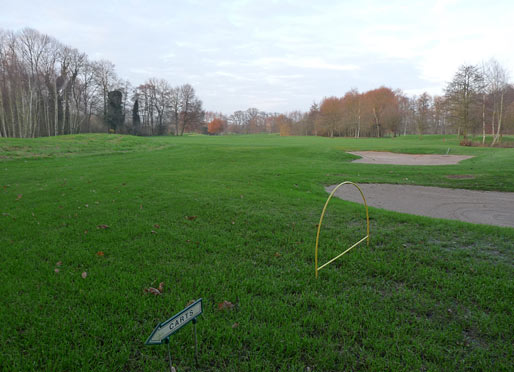 Jetzt im Dezember wird für alle Rasenbesitzer deutlich, dass bei den Gräsern eine Vegetationsruhe eingetreten ist. Es erfolgt kaum ein Zuwachs, sodass auch nicht mehr gemäht werden muss. Auf genutzten Rasenflächen, wie hier auf dem Golfplatz, werden intensiv betretene Teilbereiche in der Narbendichte geschädigt. Enge Durchgänge werden deshalb vorsorglich geschont. Hierzu werden Hinweise vom Greenkeeper aufgestellt, die der Golfer beachten sollte.