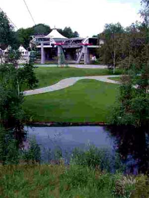 Gepflegter Rasen im Startbereich der Gondelbahn auf dem Gelände der IGA Rostock 2003.