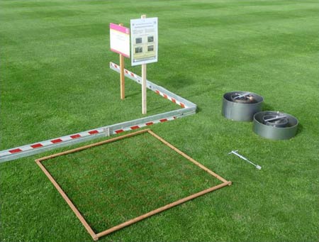 Eine regelmäßige Überprüfung und Dokumentation dieser Messkriterien liefert den Verantwortlichen für die Sportplatzpflege wertvolle Entscheidungs-hilfen bei der Sicherstellung der Rasenqualität. Anlässlich der „demopark“ in Eisenach wurden die Verfahren und die notwendigen Arbeitshilfsmittel, wie Doppelring-Infiltrometer, Schätzrahmen oder Flügelsonde im praktischen Einsatz vorgestellt.