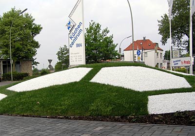 Die Fußball-WM animiert zur Gestaltung mit Rasen. Hier ein „Rasen-Ball“ vor einem Geschäftseingang zum Start in die WM-Runde Juni 2006.