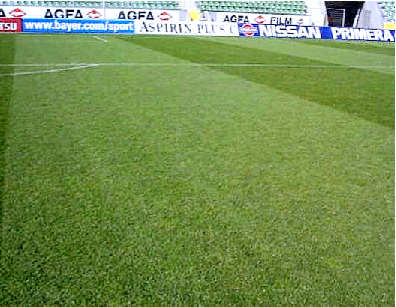 Stadionrasen im Endspurt der Bundesliga-Saison: Scherfestigkeit und Optik sind jetzt gefordert.
