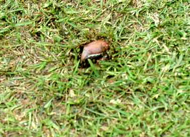 Maikäfer gräbt im Rasen zur erneuten Eiablage.