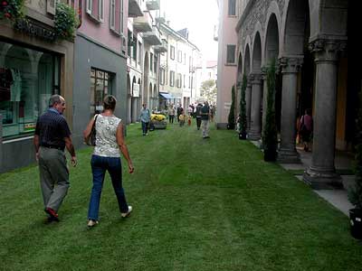 70 Jahre GAERTNERMEISTERVERBAND Tessin, Schweiz, ist zum grossen Jubiläumsfest avanciert. Die malerische Altstadt des Hauptortes Bellinzona mitsamt dem Marktplatz wurde während drei Tagen in einen grünen Rasen-Garten verwandelt. 1700 m² OH -Fertigrasen im Dauertest mit Fussgängern, Samstagsmarkt, Radfahrern, usw. haben Freude und Anerkennung auf allen Stufen hervorgerufen. Die Sonnenstube der Schweiz hat sich von der besten Seite gezeigt, dank Rasen und innovativen Gärtnern!
