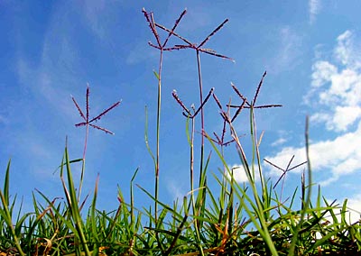 In diesem Sommer konnte sich das „Bermudagrass“ in Stuttgart gut entwickeln. Im Blickfeld der Blütenstand von Cynodon dactylon, Hundszahn oder auch „Bermudagrass“genannt.
