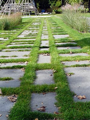 Im Park „Herrenbreite“ konnten sich die Besucher jetzt im Herbst von der Kombination der Gräser für die Gestaltung eines Plattenweges in Verbindung mit Gräserstauden überzeugen. Lolium perenne und Poa pratensis als Fugenvegetation, begleitet von blühenden Gräserstauden