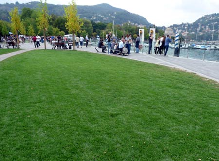 Auch am Ende der Saison zeichnet sich der Rasen aus Rohr-Schwingel am Comer See durch seine Narbendichte und Homogenität aus. Als Grasart der Übergangszone hat diese Art gerade in den südlichen Breiten Europas eine besondere Bedeutung. Mit zunehmenden Hitze- und Trockenperioden gewinnt Festuca arundinacea allerdings auch in unseren Regionen einen größeren Stellenwert in den Rasenmischungen und wird hier dann als „Mediterran-Rasen“ vermarktet.
