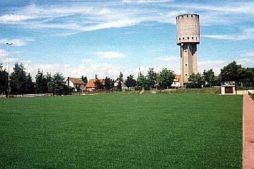 Homogene Rasendecke eines Sportplatzes nach dem Verlegen von Rasensoden.