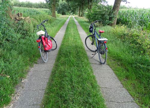 Einige Radwege des Emslandes nutzen den Rasenstreifen als Gestaltungselement. Derartige Radwege animieren zu Weiterfahrt in entspannter Atmosphäre.