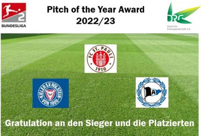 Die seit der Spielsaison 2013/14 von der DFL im Rahmen ihres Qualitätskonzeptes für Stadionrasenflächen verliehene Auszeichnung „Pitch of the Year“ geht in der abgelaufenen Saison 2022/23 an den Bundesligisten Bayer 04 Leverkusen und FC St. Pauli in der 2. Bundesliga. Die Spielfelder der BayArena sowie des Millerntor-Stadions konnten sowohl in der sportlichen Bewertung während der Spielsaison sowie auch im Rahmen der Bewertung durch die Fachjury der DFL-Expertenkommission Rasenqualität, die sich aus Mitgliedern der DRG rekrutiert, überzeugen.