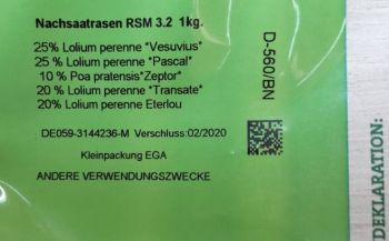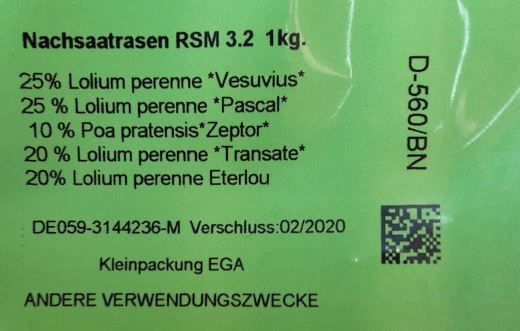 Grünes Etikett gibt Auskunft zum Inhalt von Rasenmischungen