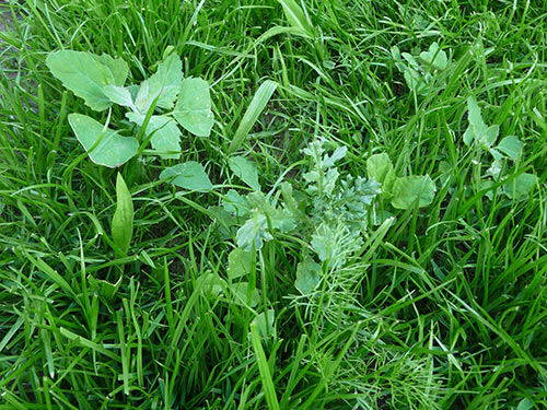 Gute Rasenmischungen enthalten keine oder nur vernachlässigbar geringe Mengen an Unkrautsamen. Mit dem Rasensaatgut aufkeimendes Unkraut stammt deshalb meistens aus dem sehr großen Samenvorrat eines jeden Bodens. Diese Unkrautsamen finden natürlich durch die gute Saatbettvorbereitung ideale Auflaufbedingungen vor. Deshalb sind manche Raseneinsaaten auch stark mit Unkraut durchsetzt. Doch keine Panik: Viele dieser Unkräuter verschwinden durch den regelmäßigen Schnitt von selbst, da es sich um nicht schnittverträgliche Ackerunkräuter oder einjährige Kräuter handelt. Auch deshalb ist das rechtzeitig einsetzende und regelmäßige Mähen so wichtig. Die noch verbleibenden, ausdauernden Unkräuter wie Gänseblümchen oder Löwenzahn können manuell ausgestochen werden.
